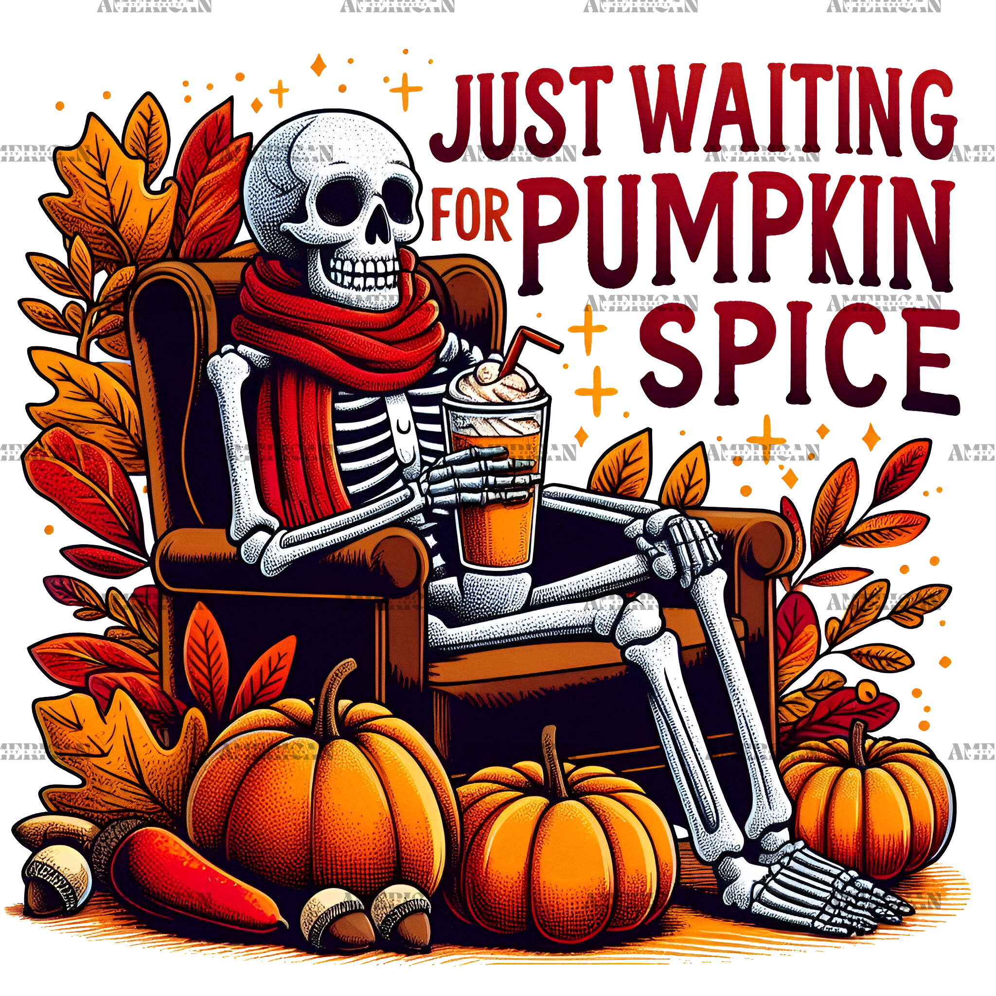 Just Waiting For Pumpkin Spice Skeleton-4 DTF Transfer
